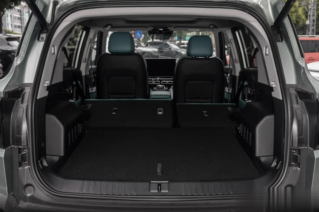 同时,车内拥有多达45处储物空间,无论是日常出行的小物品,还是长途旅行的各类装备,都能找到合适的存放位置。例如,扶手台面采用镂空设计,上方设有杯架和手机无线充电区域,下方则是储物空间,并配备了USB、TYPE-C充电口;后备厢还设有暗格,可用于收纳一些小件物品或渔具等。